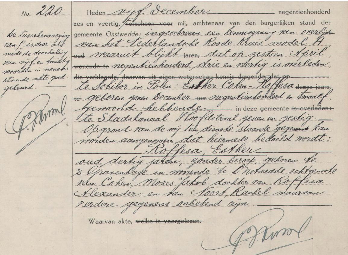 | Overlijden van een zus | Esther ‘Ettie’ Roffesa (Rofessa) 16 april 1943 (Leeftijd 33 jaar) |
