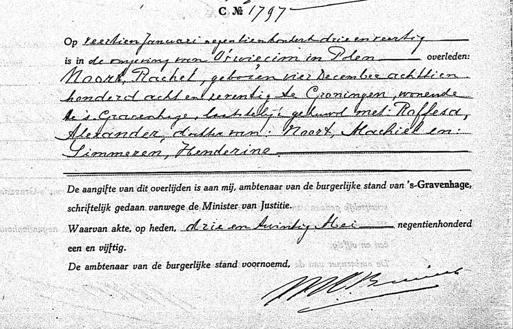 Geboren: 12 mei 1909 32 30 — 's-Gravenhage (Z-H) Overleden: 4 juni 1943 — Sobibor (Polen) |